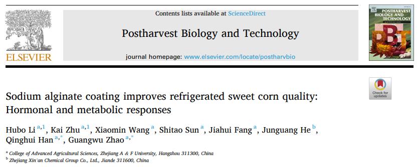近日,91吃瓜 种子科学与技术团队在《Postharvest Biology and Technology》(中科院一区TOP,IF=6.4)期刊上发表题为“Sodium alginate coating improves refrigerated sweet corn quality: Hormonal and metabolic responses”的研究论文,揭示了海藻酸钠涂层通过调控激素与代谢通路提升冷藏甜玉米品质的新机制,为鲜食玉米的采后保鲜提供了创新技术方案。甜玉米因口感清甜、营养丰富,成为广受欢迎的果蔬型作物,但其采后呼吸旺...
